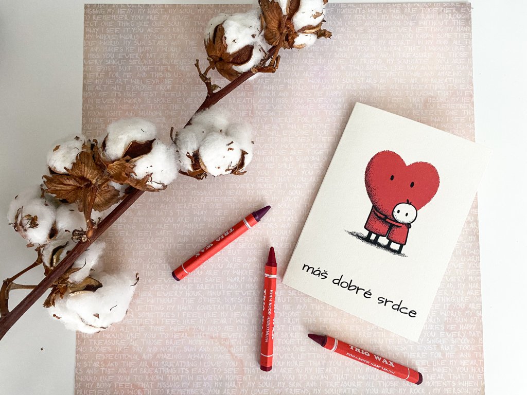 Každé přání je tištěno na kvalitním perlově bílém papíru o gramáži 300 g/m² a velikosti A6, součástí je také obálka ve stejné barvě. Díky minimalistickému designu a originální ilustraci působí elegantně a upřímně.