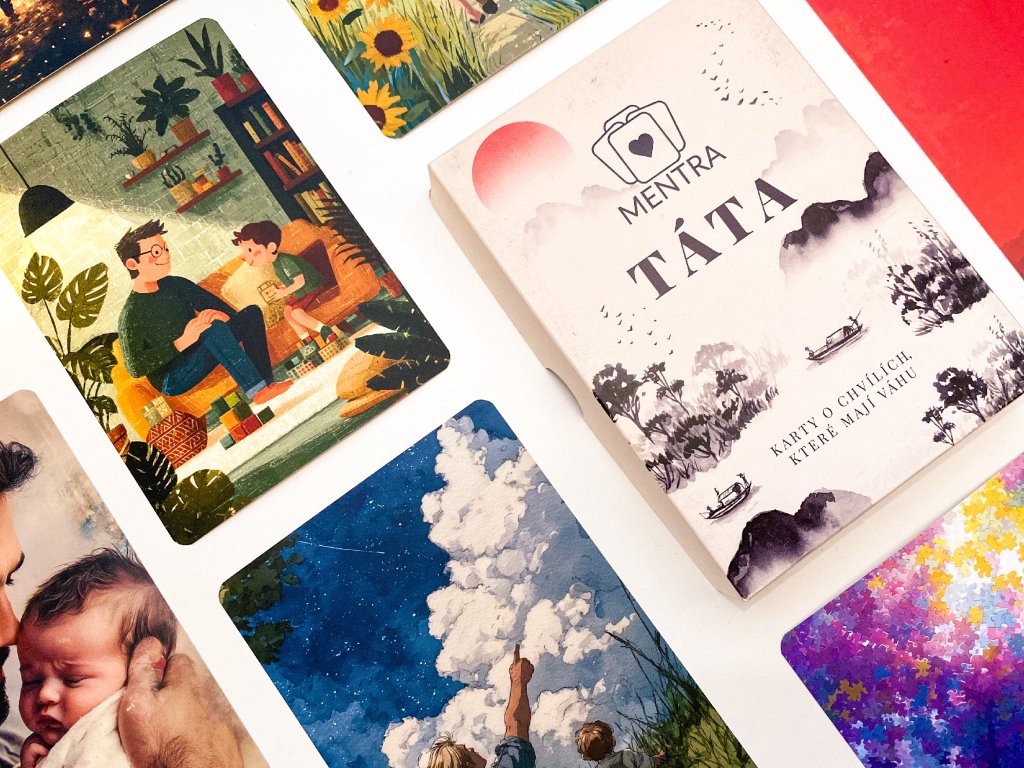 Sada karet TÁTA je vytvořena jako podpora při sebepoznání a práci s emocemi. Každá karta nese ilustraci, která má za úkol v člověku vyvolat určité pocity, myšlenky nebo vzpomínky. Nejde o to říkat něco otci – název je spíše symbolický a pomáhá nám asociovat, co v nás obrázek vyvolává.