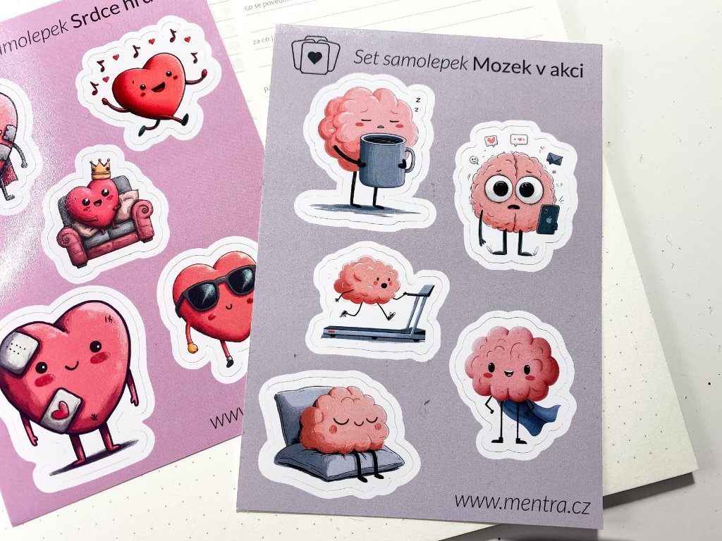 Sada samolepek „Mozek v akci“ pracuje s motivem mozku jako hlavního aktéra každodenního fungování – soustředění, zahlcení, výkonu i odpočinku.