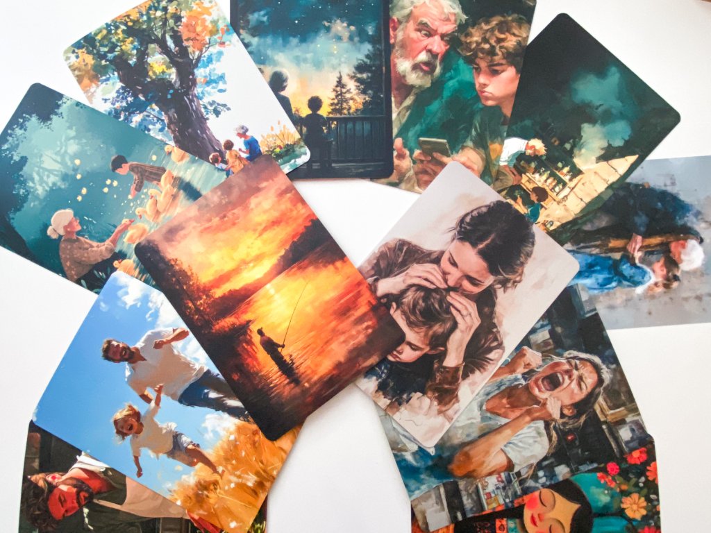 Karty můžete využít jako citlivý nástroj pro rodinné povídání, jako inspiraci pro nahrávání vzpomínek, nebo jako dárek, který přináší možnost být si blíž – i v tichu.