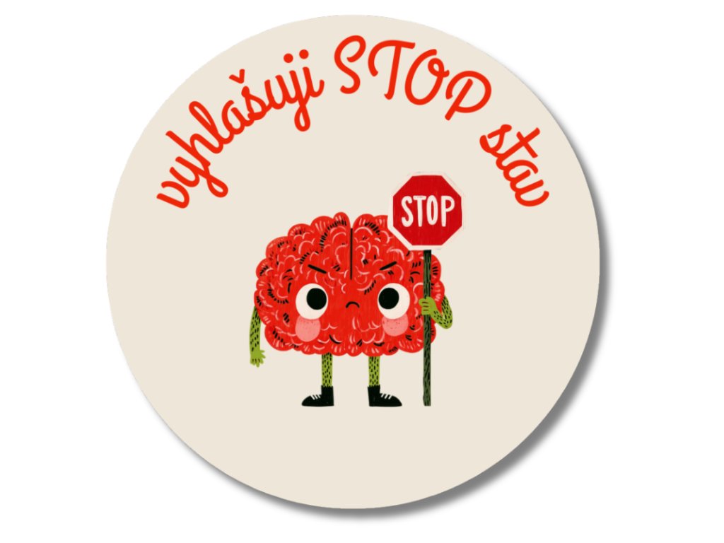 Někdy toho má hlava prostě dost. Myšlenky se točí, úkoly naskakují a vnitřní tlak roste. Tahle samolepka to říká nahlas – a s úsměvem: vyhlašuji STOP stav.